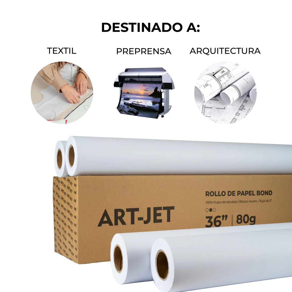 Descubrí la calidad premium de Art-Jet® con nuestros rollos de papel Bond, diseñados específicamente para impresión en plotters de gran formato.